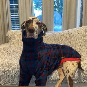 A carefully curated selection of custom & ready-made designer dog coats, jackets and jumpers for all large and giant breed dogs, specialising in clothing for Great Danes & Greyhounds.