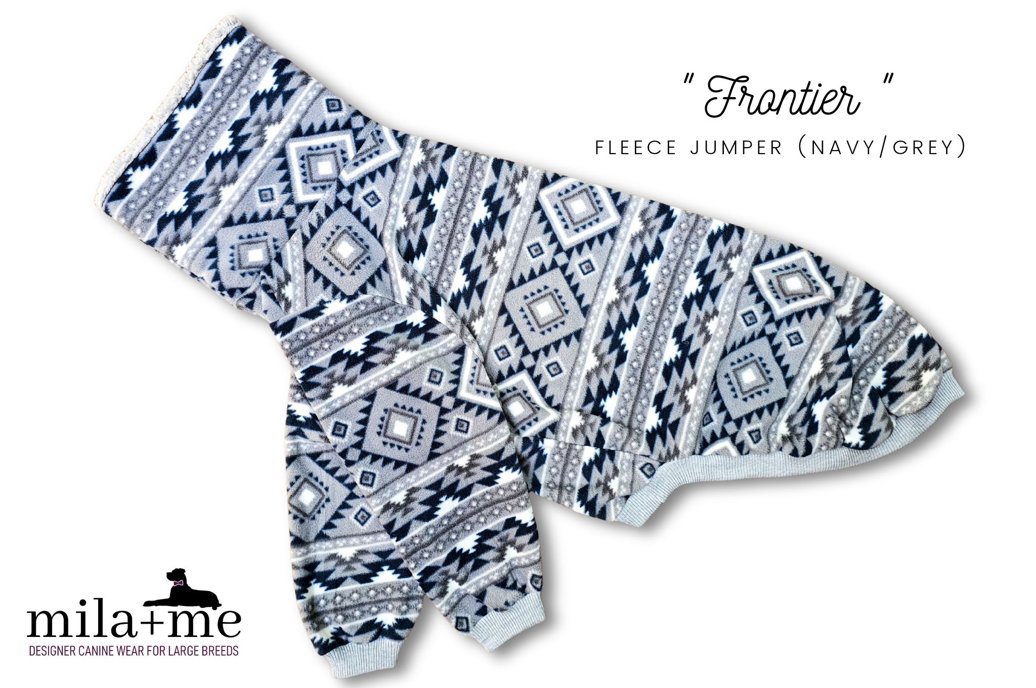 Soft, premium polar fleece with a frontier spirit — the perfect companion for mountain hikes, riverside rambles and nights around the campfire. The FRONTIER jumper wraps your Great Dane in adventure‑ready warmth, combining plush polar fleece and a luxe sherpa‑lined collar. Its striking western print comes in two stunning colourways, invoking wide‑open skies and endless trails. From sunrise walks through misty valleys to chilly evenings under the stars, this jumper celebrates every shared journey with your best friend.